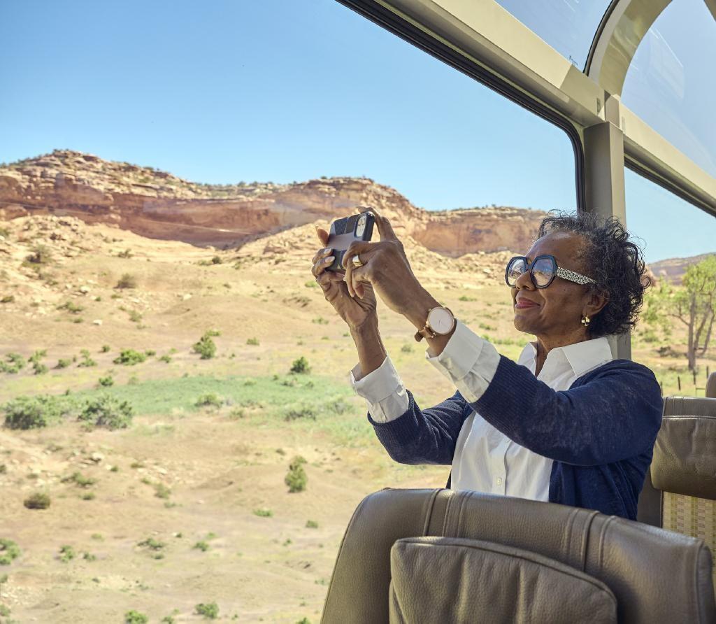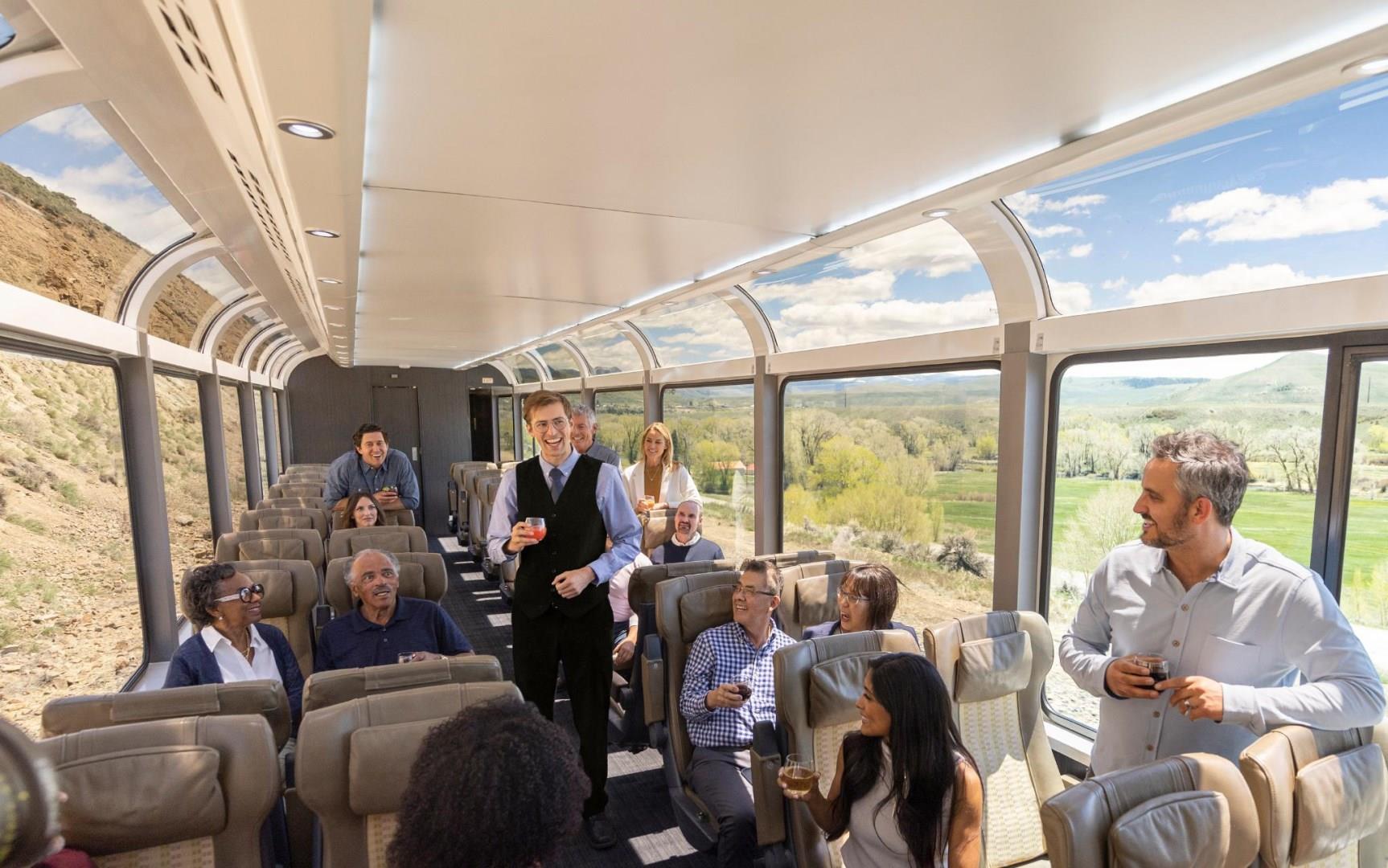 Every Canyon Spirit rail journey comes with the all-inclusive Signature experience which includes two- or three-days onboard the train with reclining, comfortable, spacious seats; snacks, meals, and alcoholic and non-alcoholic beverages; elevated service and storytelling from Onboard Hosts; access to an outdoor viewing area; motorcoach rail station transfers and luggage delivery to and from your overnight accommodation between train days, where applicable.